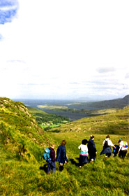 DAY 3 - Monday Breakfast at 8am and depart at 9am - The wonderful quartzite coned mountain of Croagh Patrick has been a sacred place for almost 5000 years. As far back as 3000 BC our megalithic ancestors worshipped there. Before the birth of Christ, the festival of the god Lugh was held on its slopes. Lugh is the god whose name gives us the Irish word Lughnasa for August, and it would seem that there is a connection between the pagan worship which took place at the end of the summer and the date fixed for the present day Christian pilgrimage to Croagh Patrick. Croagh Patrick is Ireland’s holy mountain where Patrick, the patron saint, spent 40 days and nights praying and fasting in 441AD. While on the summit Patrick was tormented by blackbirds which surrounded him and in later stories became demons and serpents. Ancient chroniclers say that Patrick threw his bell at them and banished them into the hollow known as Lug Na Deamhan, which is located on the North side of the mountain. It is a common belief that this is why no poisonous snake or reptile can be found in Ireland today. The plain iron bell said to belong to the patron saint is preserved in the National Museum. Walk Details: 8 miles, 1750 feet, uphill climb on a loose stoned, pilgrim track, small section of bog and country lanes. *Please note that we do not ascend to the summit of Croagh Patrick mountain at 2500 feet as owing to the steepness and erosion of the track near the top we consider it unsuitable. Our walk takes us to 1750 feet where we turn south and descend. Dinner tonight is in a restaurant of your choice in Westport.